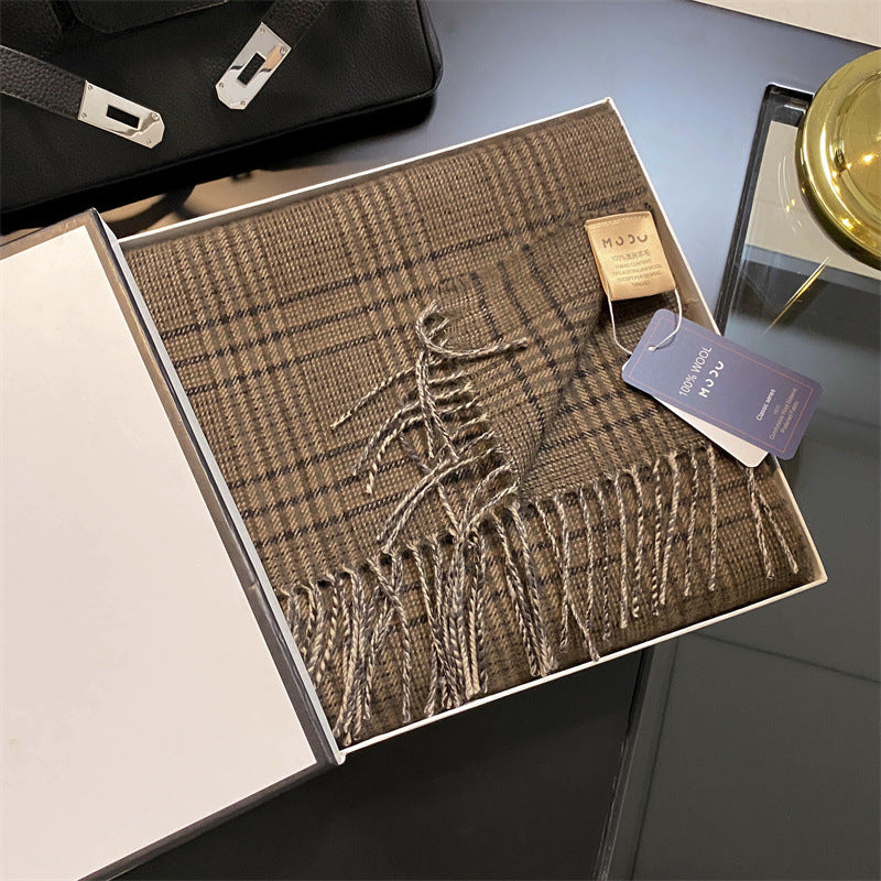 100% Wool Retro Plaid Scarf Men & Women Narrow Warm Shawl