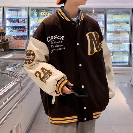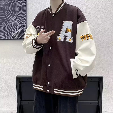 2024 Men’s Baseball Jacket – Trendy Contrast Stitching Spring & Autumn Coat