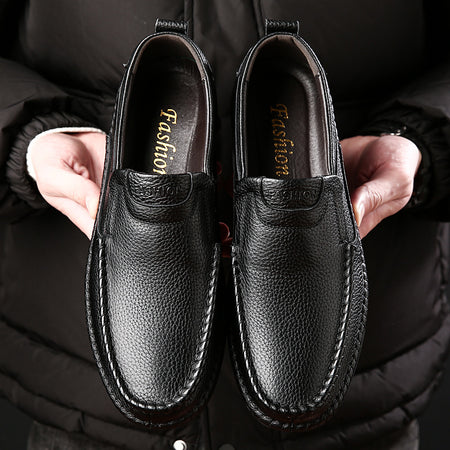 2024 Men’s Cowhide Leather Slip-On Shoes Non-Slip Soft