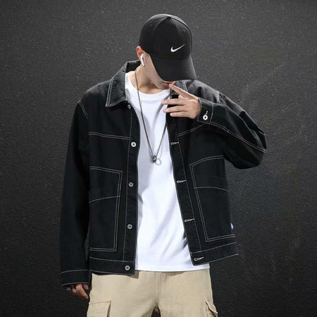 Step into the season with this 2024 Autumn & Winter Men's Black Denim Top 🖤🧥 – a perfect blend of Korean streetwear and modern workwear style 🇰🇷🛠️. Designed for fashion-forward men, this loose-fit gown-style top features clean topstitch detailing that adds structure and high-end appeal ✨🧵.