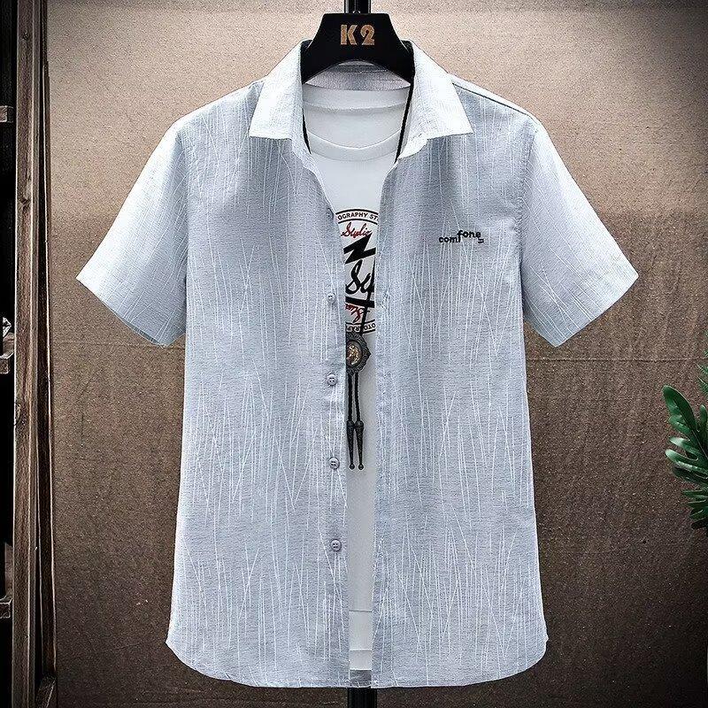 👔 Elevate your summer look with the 2024 Men’s Vertical Stripe Short-Sleeved Shirt, designed for the modern gentleman in Nepal who values both style and sophistication. 🇳🇵 This lightweight, square-collar slim-fit shirt brings together classic business elegance with breathable comfort — ideal for office wear, meetings, or smart-casual occasions in the summer heat. ☀️💼