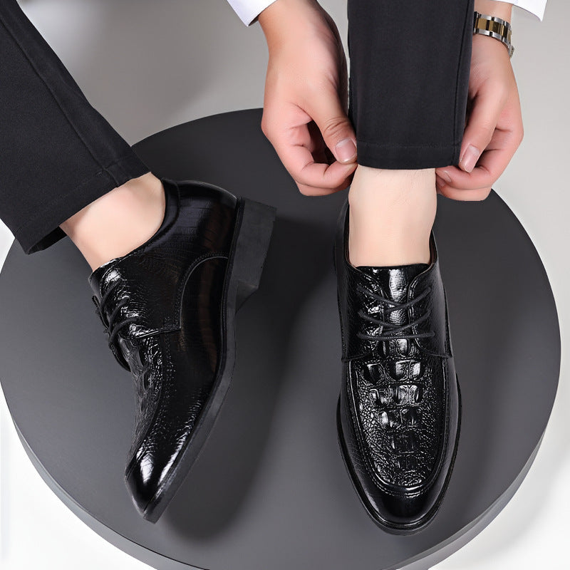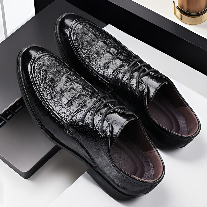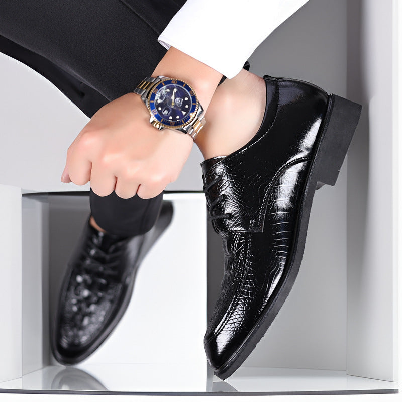 Make a powerful statement at weddings, business events, or formal dinners with these crocodile pattern leather dress shoes. π΄οΈπΌ Designed in a British-inspired silhouette, they blend elegance with comfort β now available in plus sizes for every gentleman.