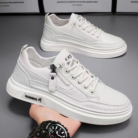 2025 Autumn Men’s White Leather Slip-On Sneakers