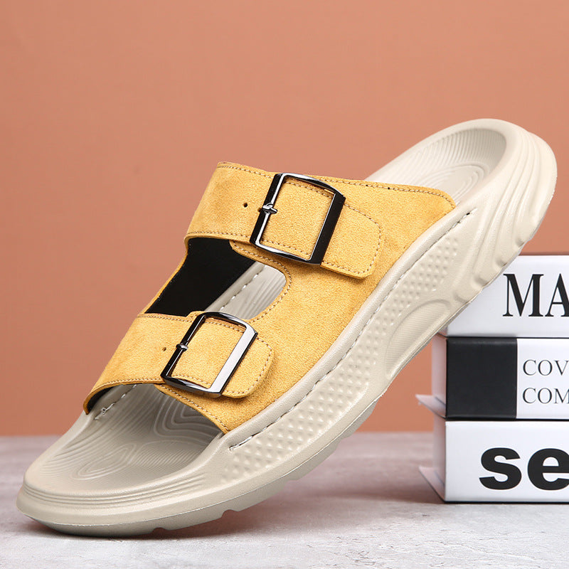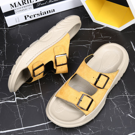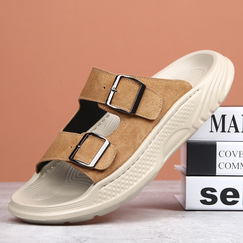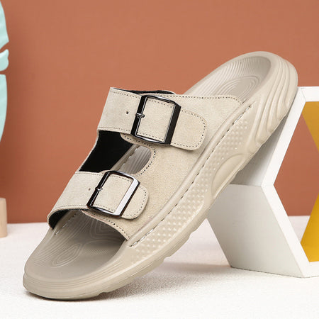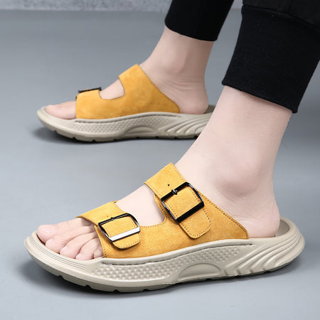Men’s Leather Sandals | Genuine Leather, Thick Sole Slides