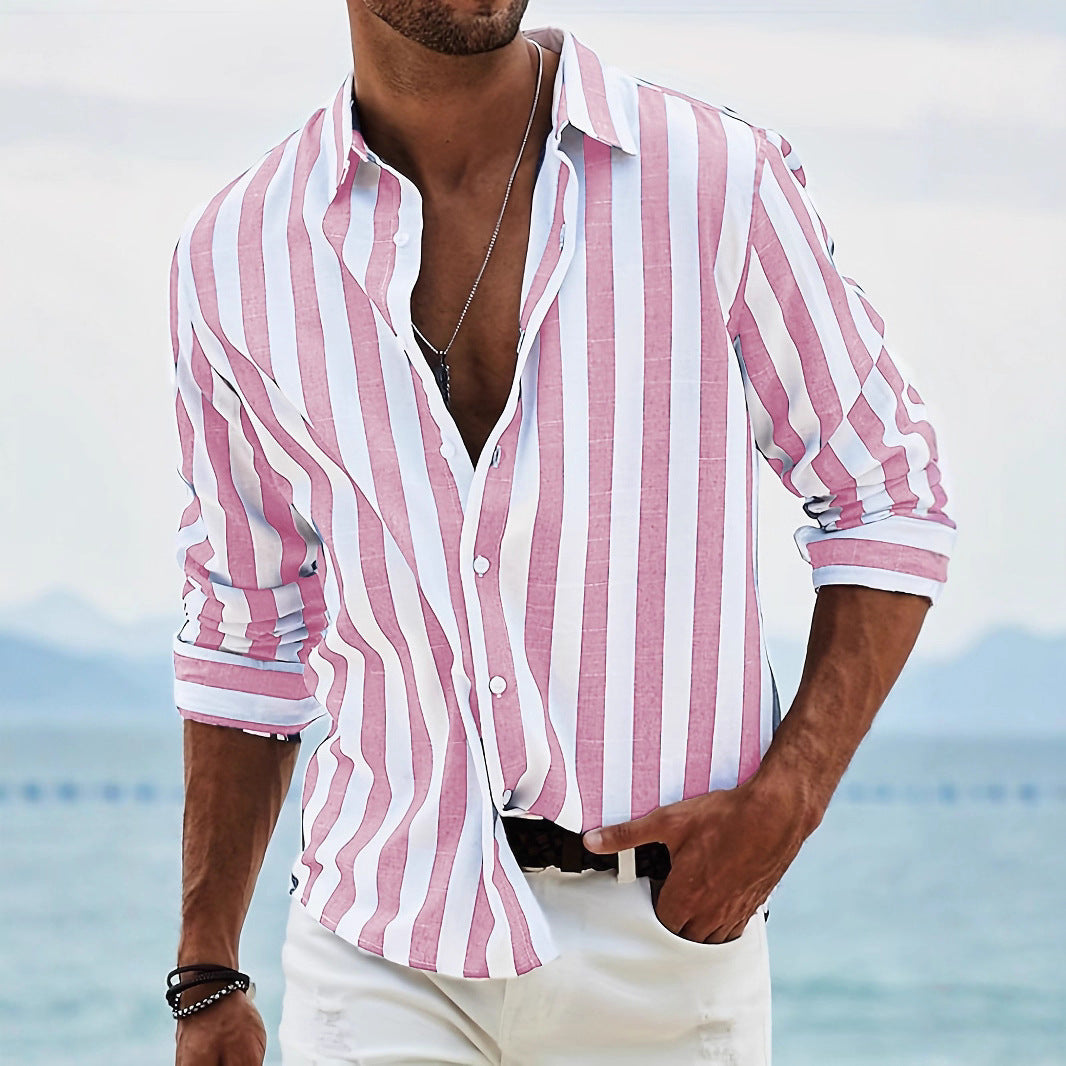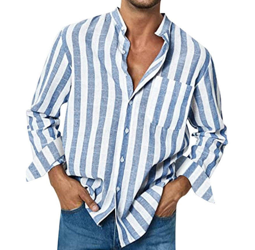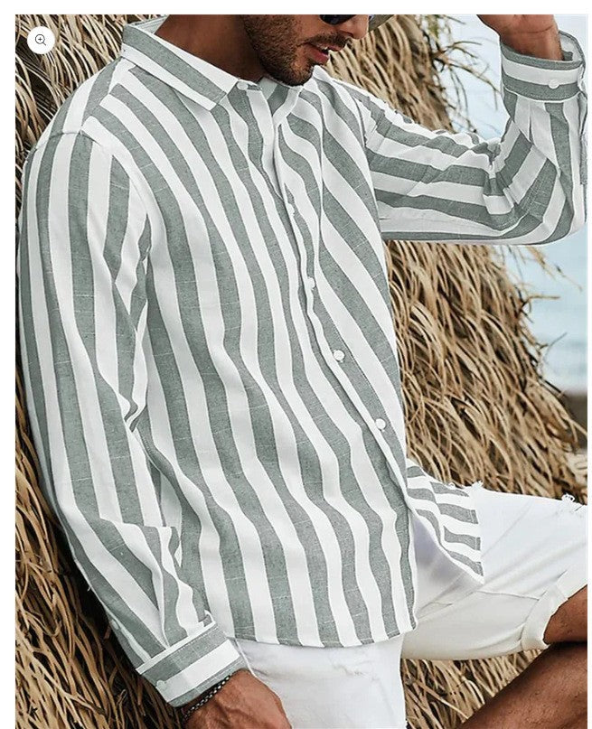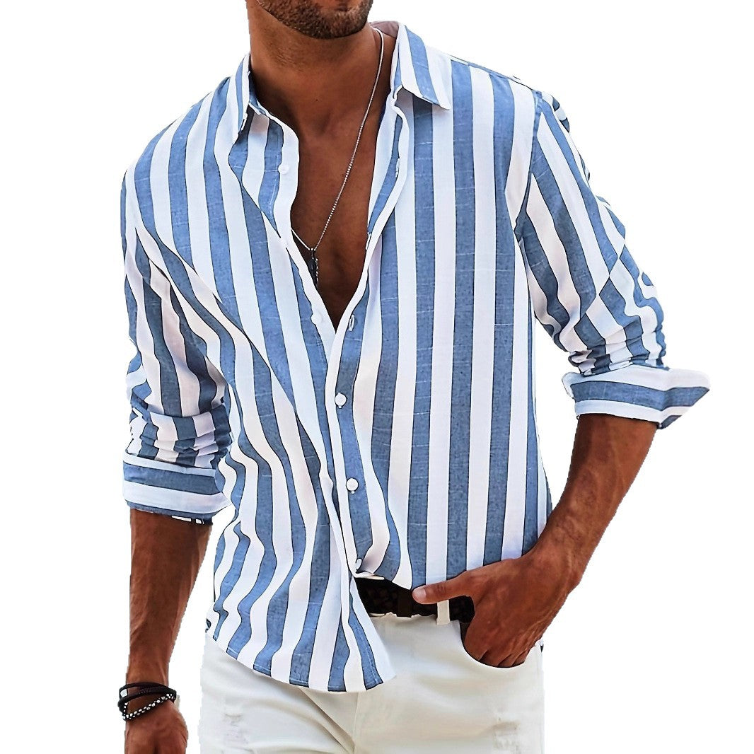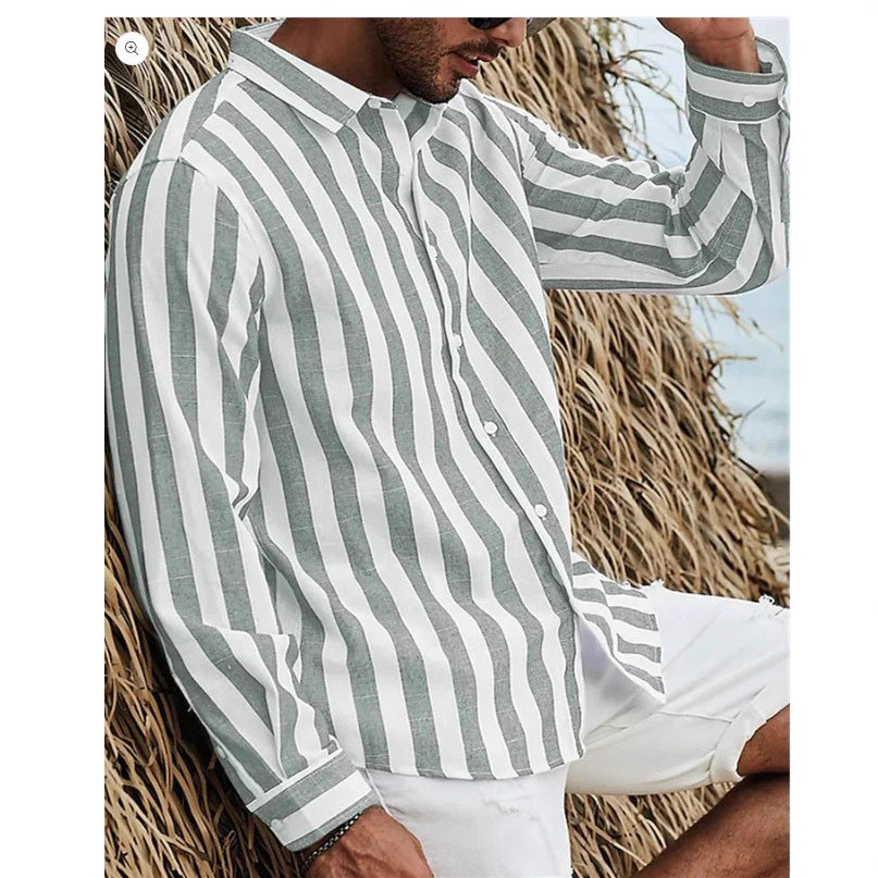 2025 Men’s Casual Striped Long-Sleeve Shirt