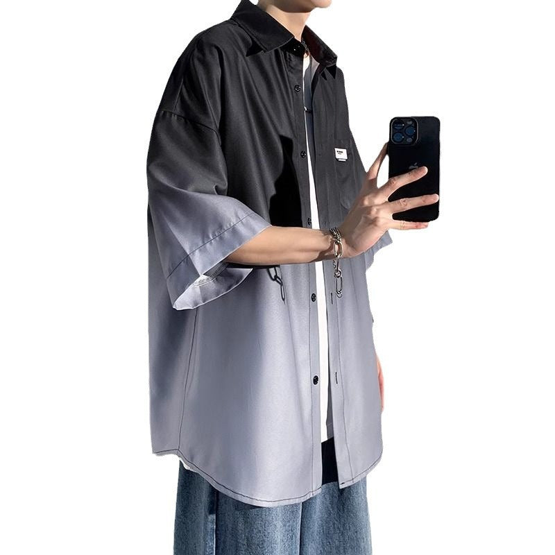 ❄️ Step into summer 2025 with the Men’s Ice Silk Gradient Short-Sleeved Shirt Jacket — a perfect blend of trendy style and casual comfort for young men across Nepal! 🇳🇵 Crafted from premium ice silk fabric, this loose-fit shirt keeps you cool and breathable during hot days in Kathmandu, Pokhara, and beyond. ☀️💨