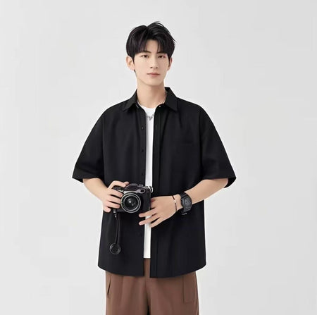 The classic lapel collar design brings a touch of sophistication, while the loose fit ensures freedom of movement and all-day comfort. Whether for casual outings, business casual events, or weekend hangouts, this shirt is both practical and stylish. 🎒💼