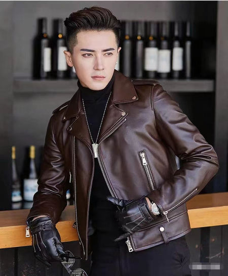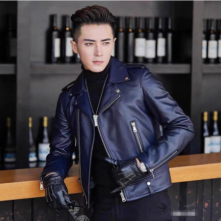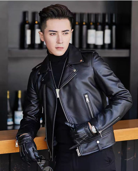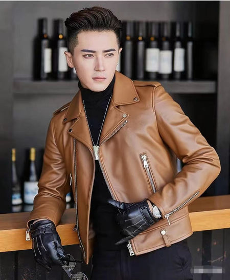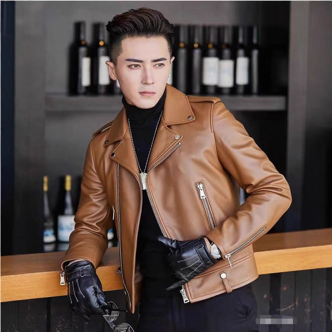 2025 Slim Korean Men’s Leather Jacket | Spring Autumn Motorcycle Style