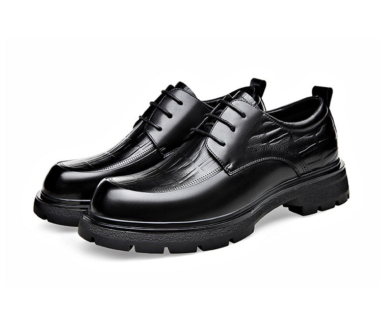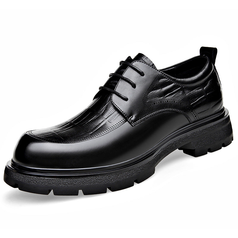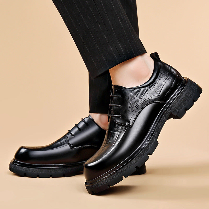 π΄οΈ Elevate your business and casual wardrobe with these British-inspired thick-soled dress shoes, designed especially for wide feet. Their classic black design and bold big-head silhouette bring elegance with an edge. π¬π§β«
