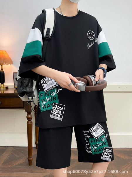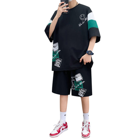 🧑🎓 Ideal for junior high and high school boys, this set combines modern colorblock fashion with casual comfort, making it a favorite for teens who want to look good without sacrificing ease. The elastic waistband shorts and soft-stretch T-shirt offer all-day wearability. 💨🧍♂️