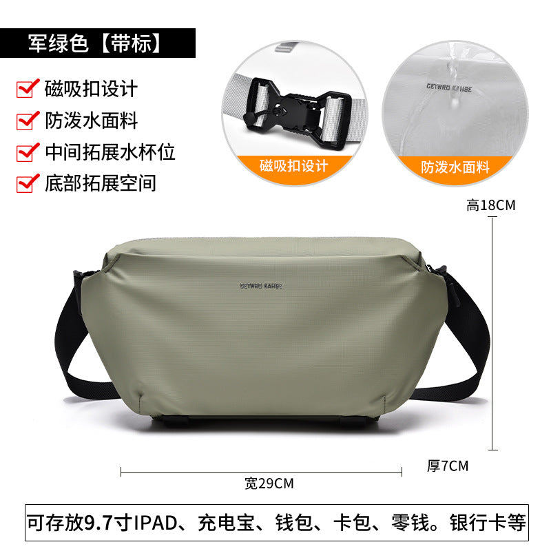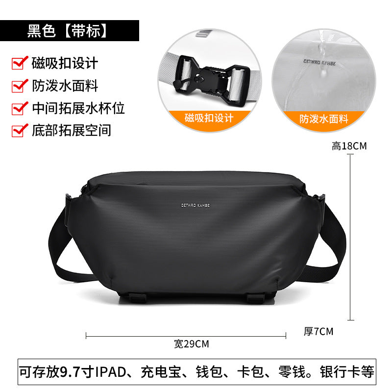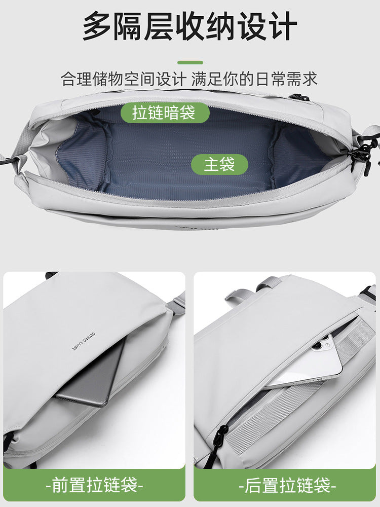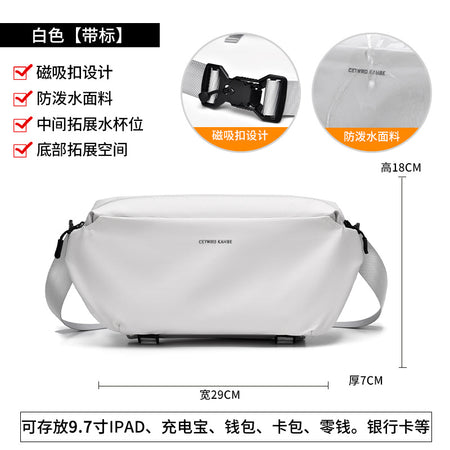 With a large and functional compartment, it easily stores your mobile phone, wallet, keys, water bottle, and other essentials, keeping them secure and accessible. The adjustable shoulder strap allows it to be worn as a chest bag, crossbody, or shoulder bag, providing comfort and versatility for long hours of wear.