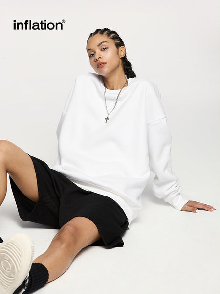 This sweatshirt combines fashion and practicality. The fleece lining retains heat while the soft fabric feels gentle against the skin. Its loose silhouette allows layering over t-shirts or under jackets, making it suitable for varying temperatures.