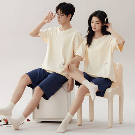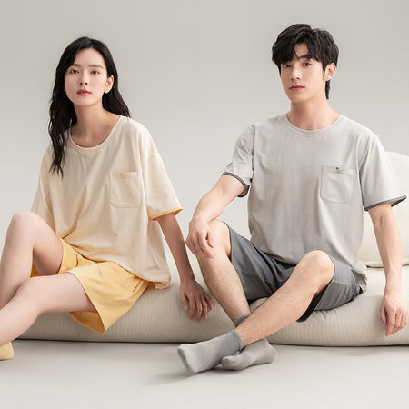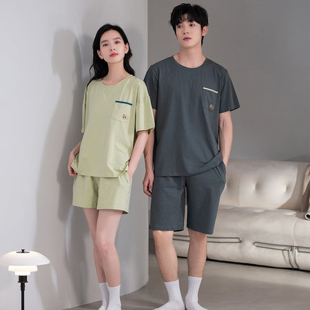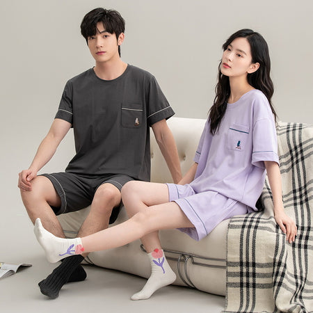 Antibacterial Pure Cotton Men’s Pajamas – Summer Short-Sleeve Set