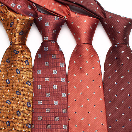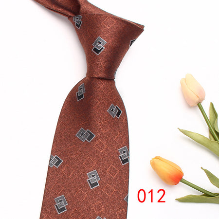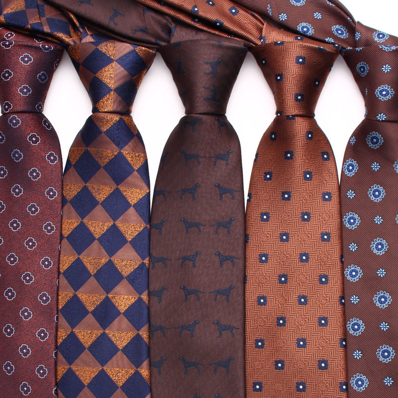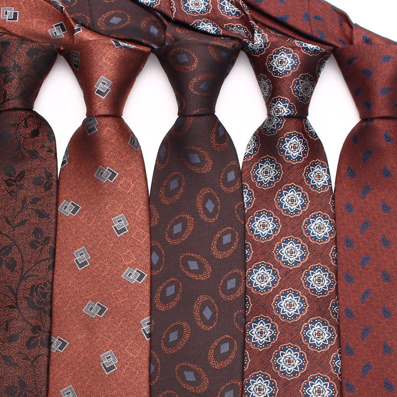 Brown Jacquard Tie β 8cm Vintage Business Style