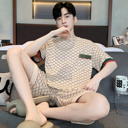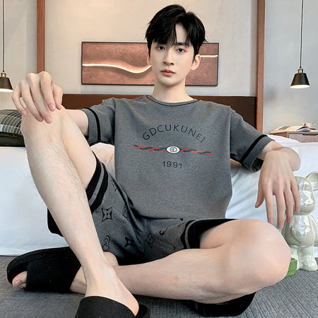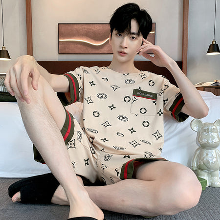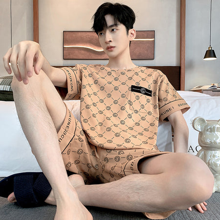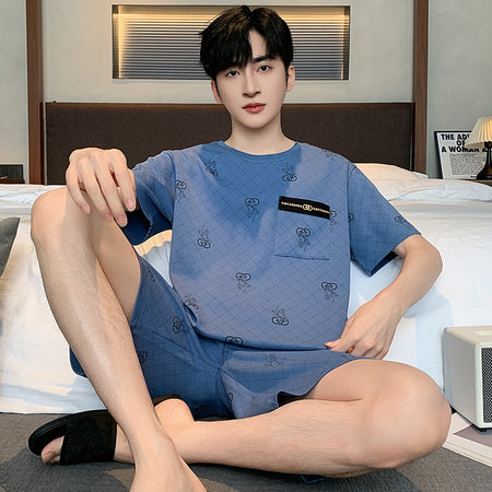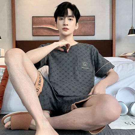 100% Cotton Men’s Pajamas – Summer Short Sleeve & Shorts Set