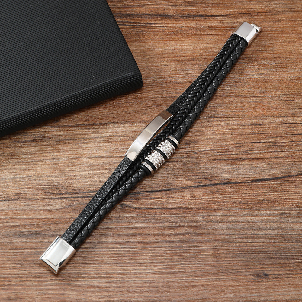 Men's Multi-Layer Leather Bracelet β Stainless Steel Titanium Accessories