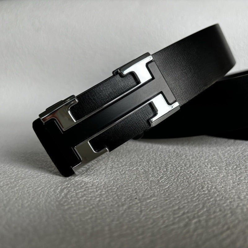 Toothless Alloy Buckle Belt β Genuine Leather for Men