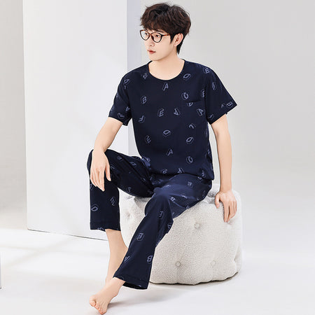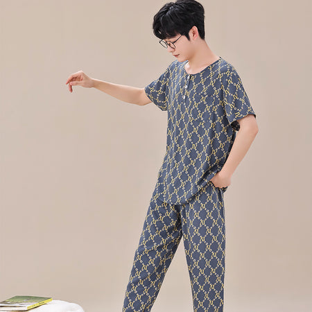 Artificial Cotton Men’s Pajamas – Short Sleeve Homewear Set