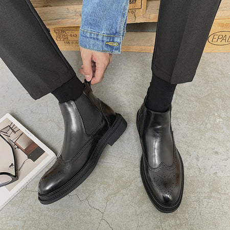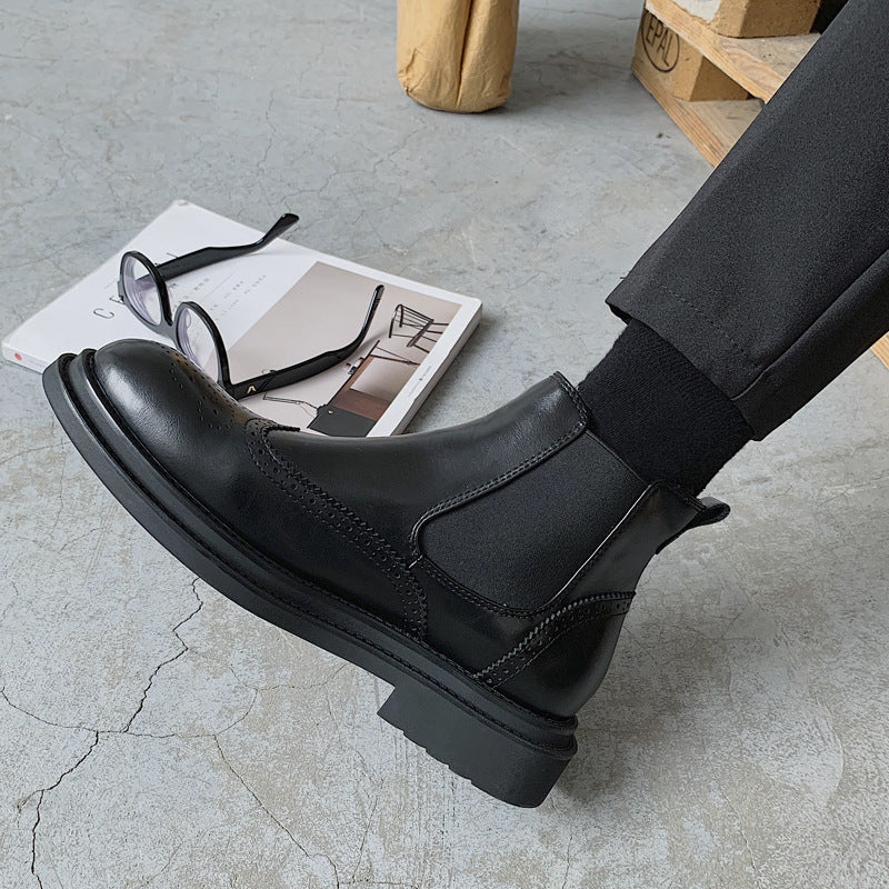 Step up your fashion game with these sleek black high-top Chelsea boots for men 👢🖤. Inspired by classic Martin boots with a modern twist, they offer the perfect blend of bold design, comfort, and versatility for spring and beyond.