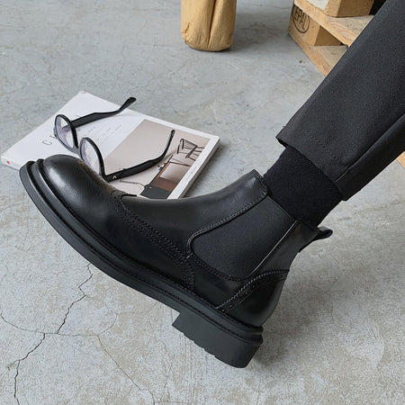 Men’s High-Top Chelsea Boots – Black Leather Martin-Style