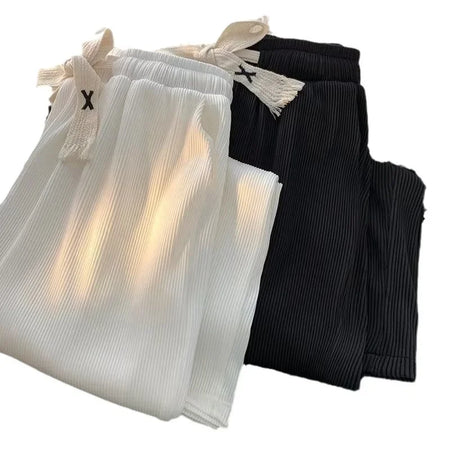 Made from soft ice silk fabric, they keep you cool and comfortable even on the hottest days 🌬️. The cropped fit gives you a trendy look, while the sleek black design adds versatility, making these pants perfect for a variety of outfits 🖤🔥.