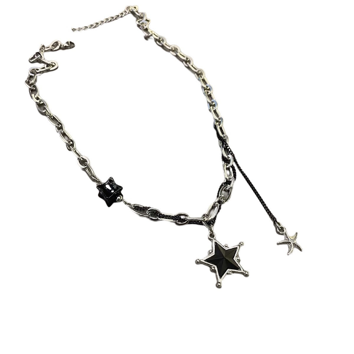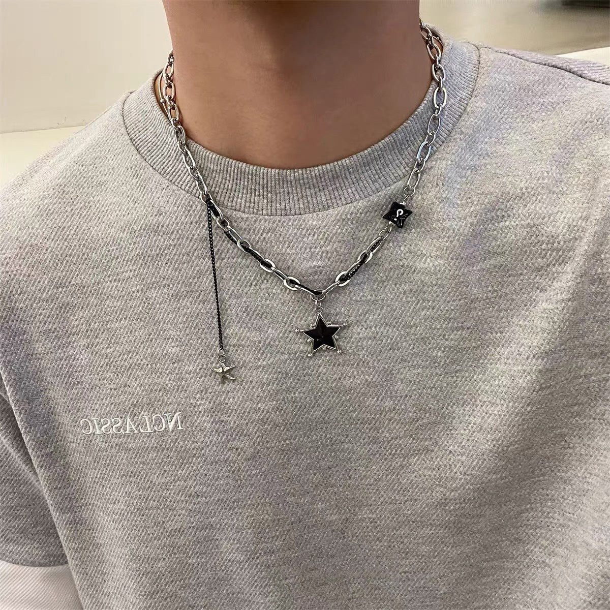 Black Star Pendant Necklace – Trendy Hip-Hop Chain