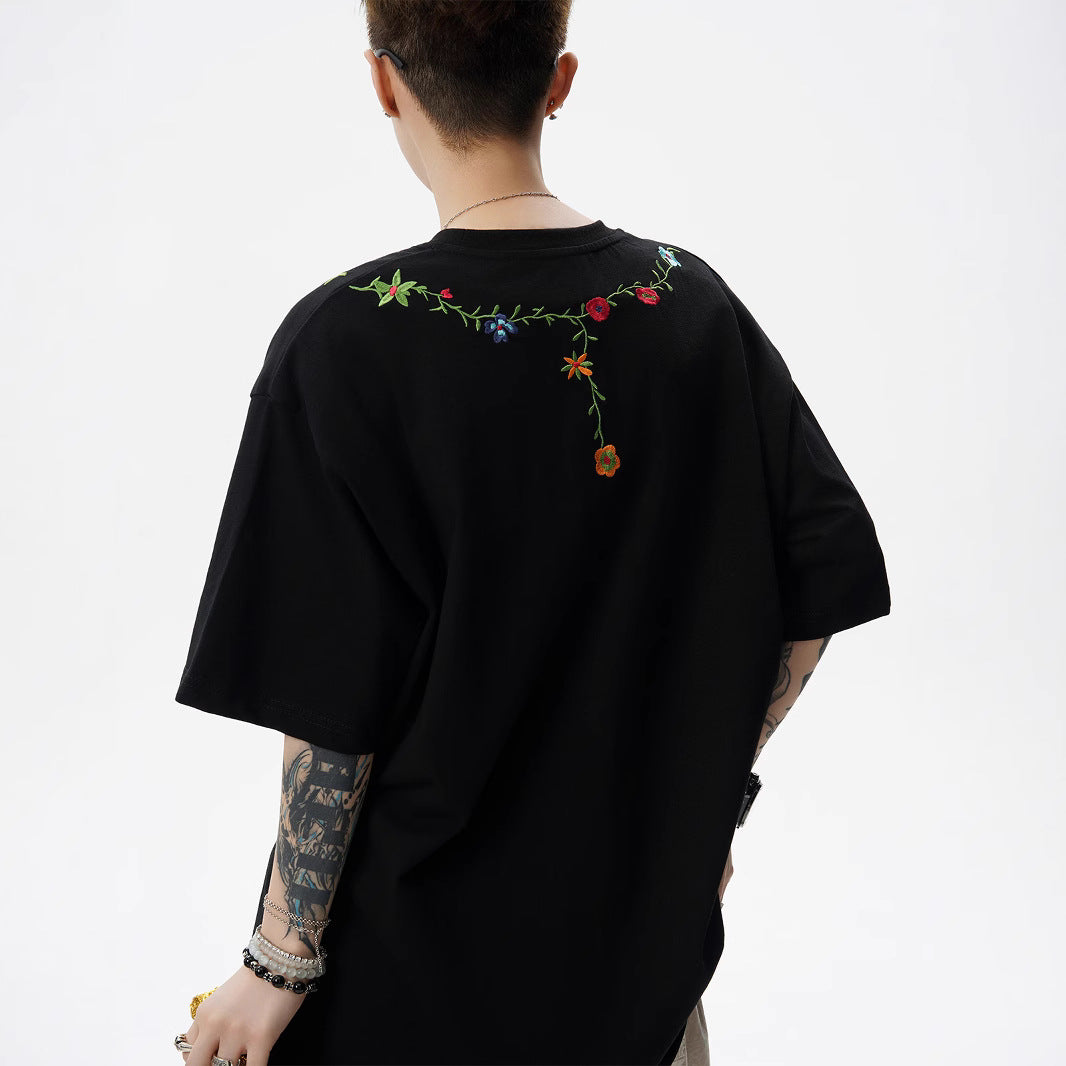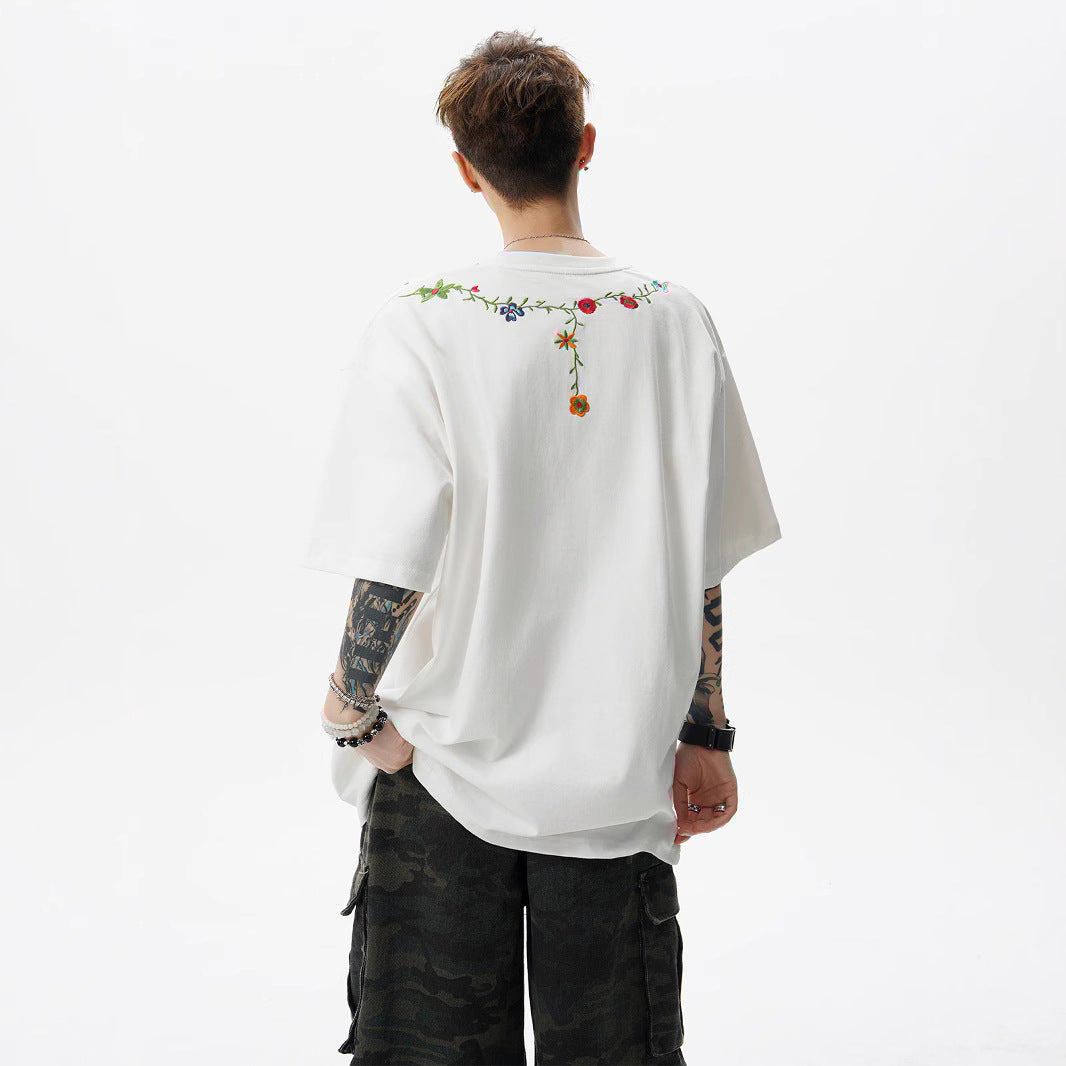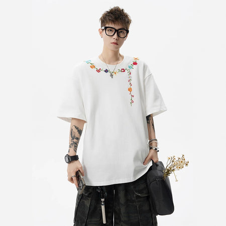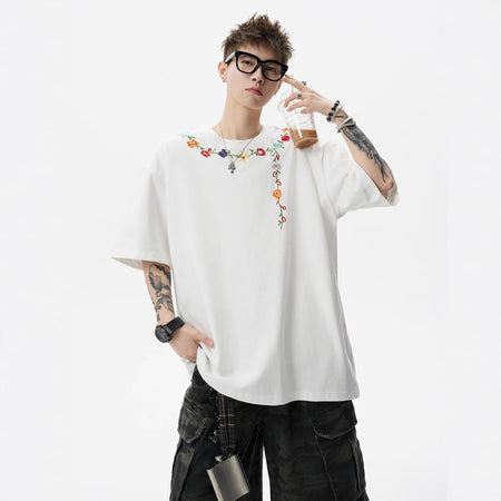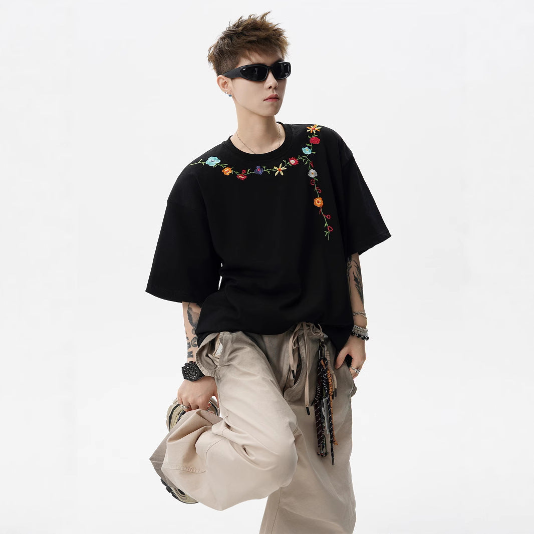 Men’s Floral Embroidered T-Shirt – Chinese Style Summer Streetwear