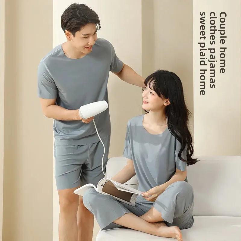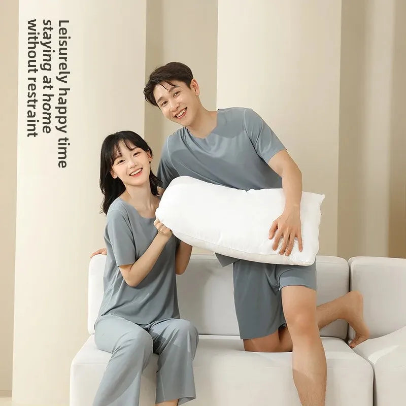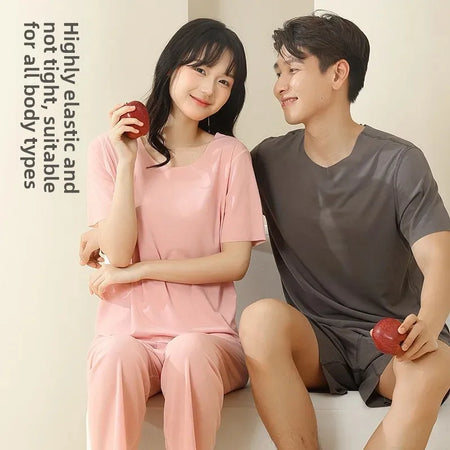 Couple Ice Silk Pajama Set β Summer Loose Fit Nightwear