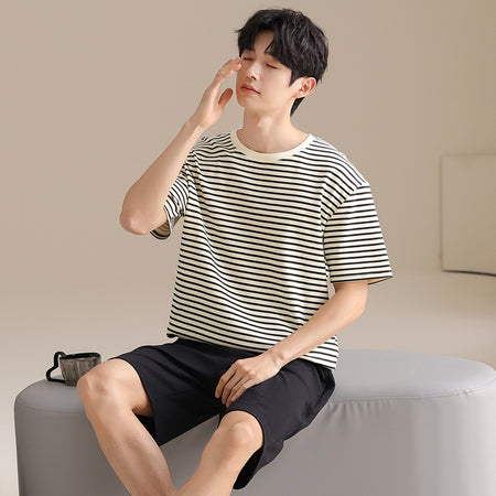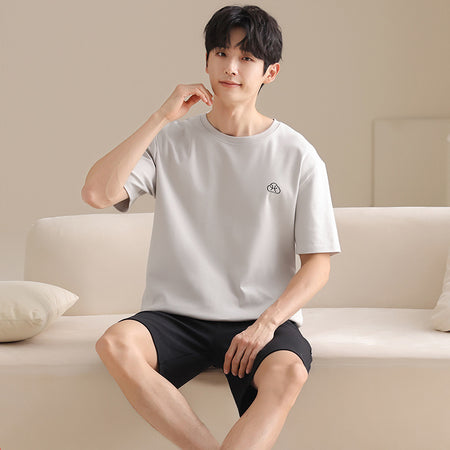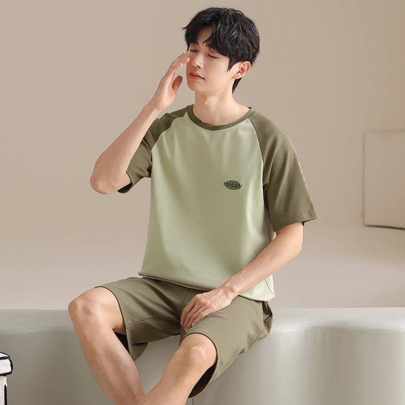 Ice Silk Men’s Pajamas – Summer Short Sleeve & Trousers Set