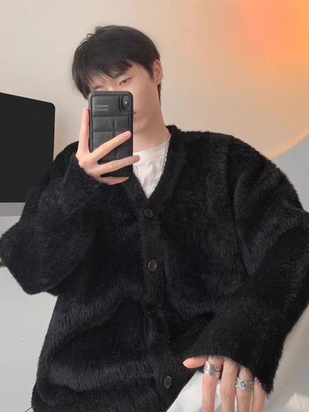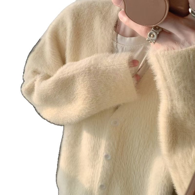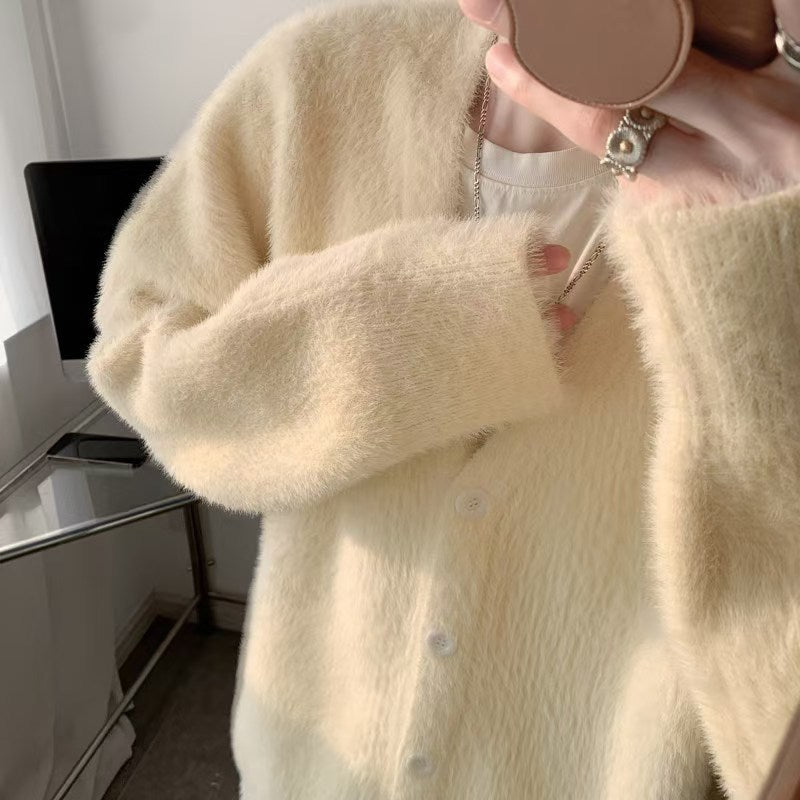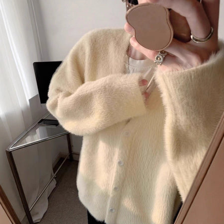 Couples Mink Velvet V-Neck Loose Knit Cardigan Jacket