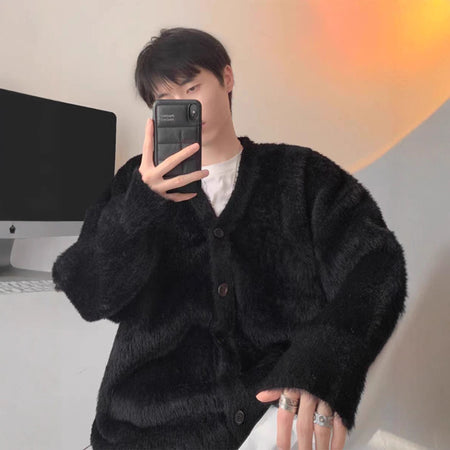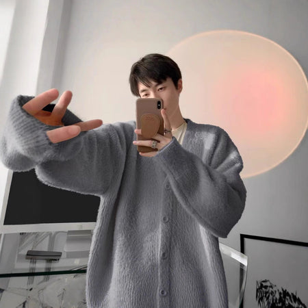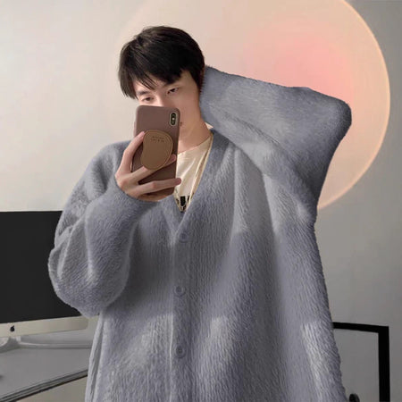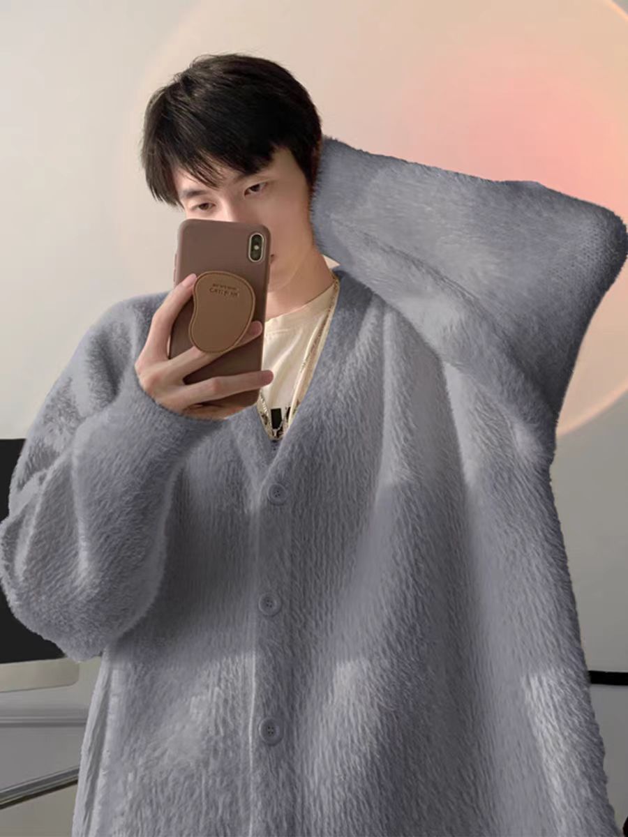 Elevate your couple wardrobe with these trendy loose-fitting V-neck mink velvet cardigans—a perfect mix of comfort, fashion, and warmth for autumn and winter! 🌟