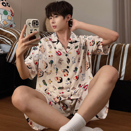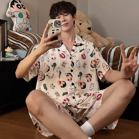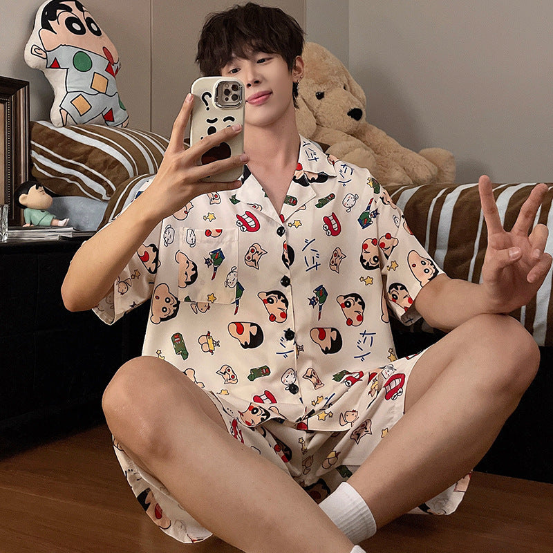 Crayon Shin Ice Silk Men's Pajamas β Summer 2025 Set