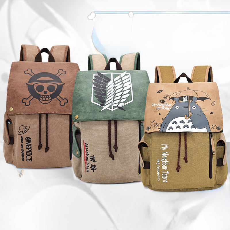 Calling all anime lovers! ππ₯ Show off your fandom with this cool animation-themed canvas backpack featuring popular series like Attack on Titan, One Piece, Naruto, Totoro, and more!