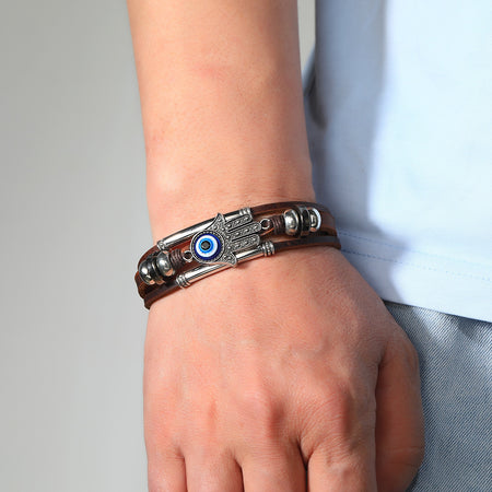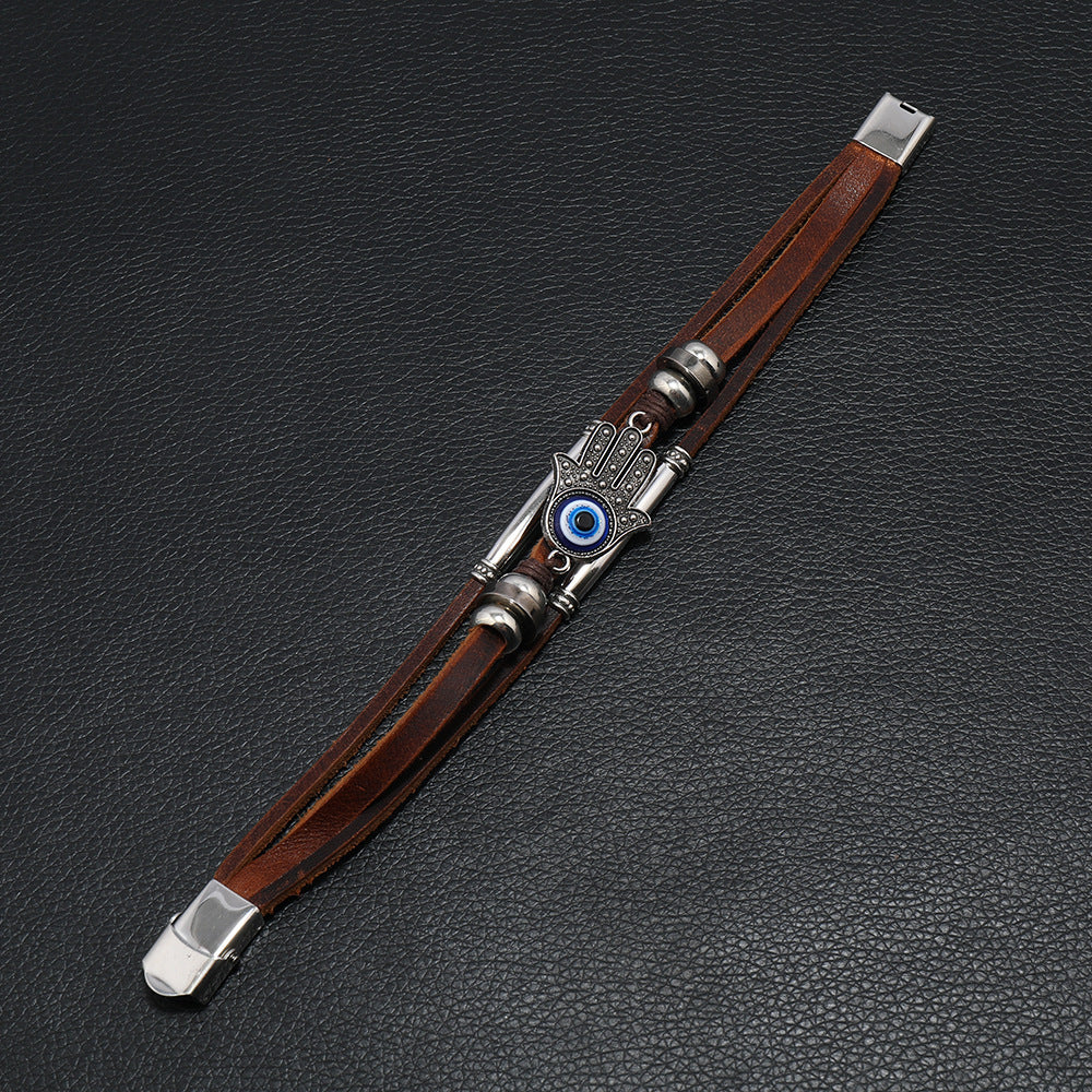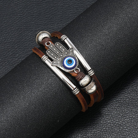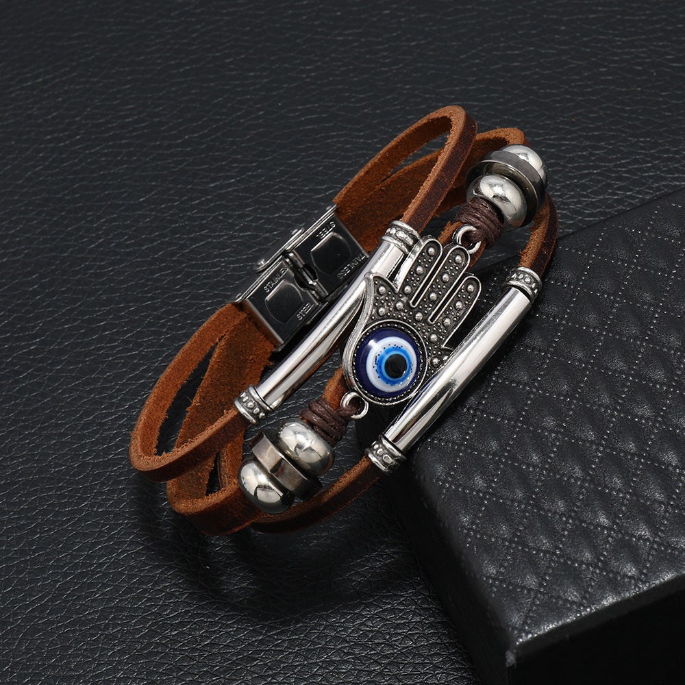 Men's Stainless Steel Cowhide Rope Bracelet – Handmade Devil's Eye