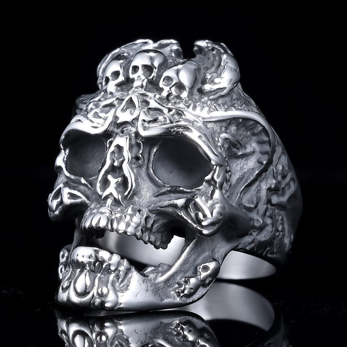 The Skull Ring is here to add some edge to your style! Featuring a unique combination of small and big skulls, this punk-inspired jewelry is perfect for men who love to stand out. Crafted for the modern rebel, it brings together bold personality and durable design to complement your individual style.