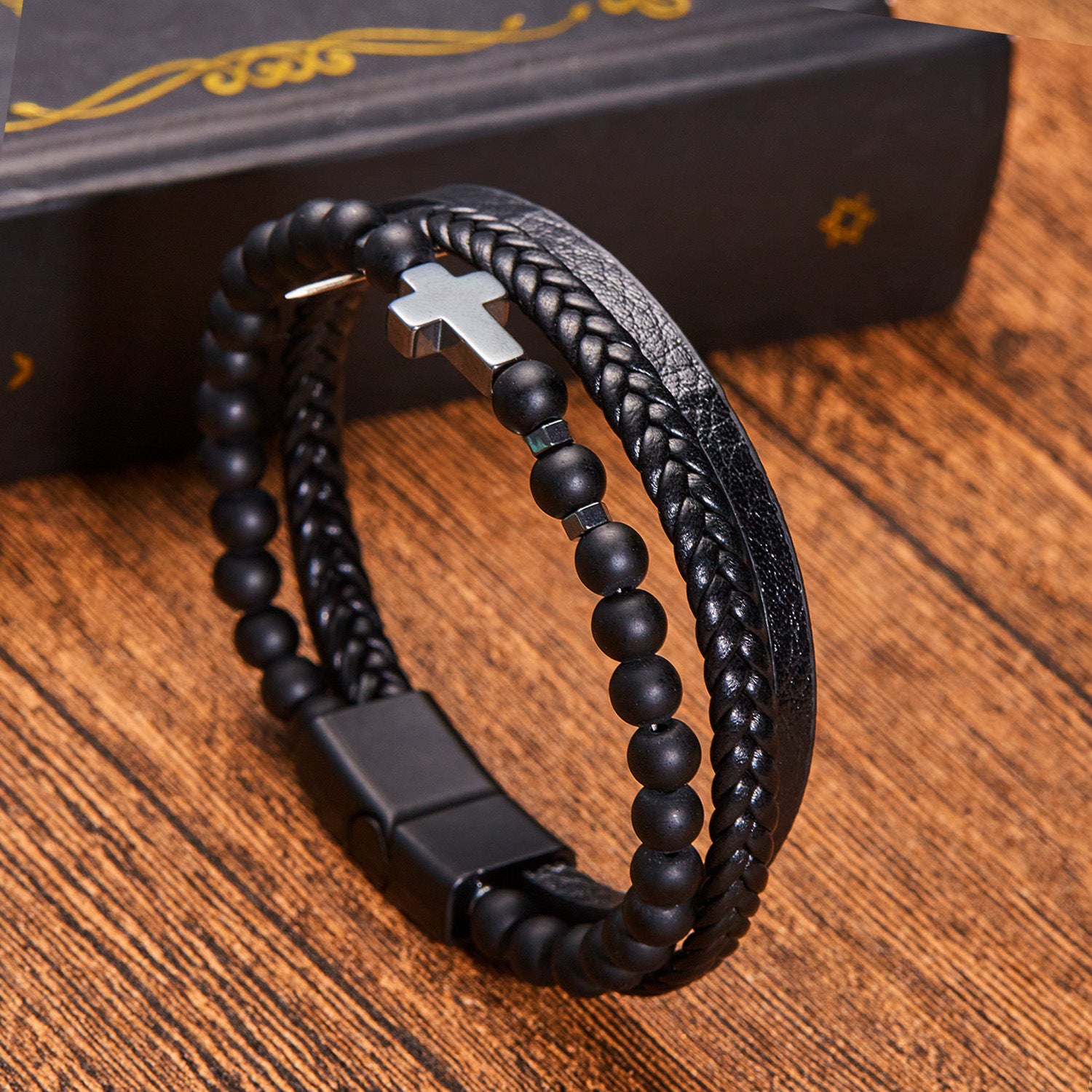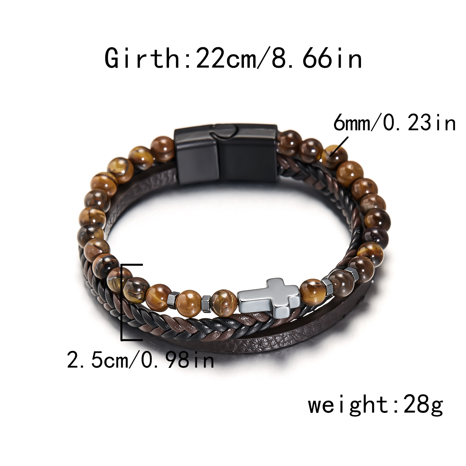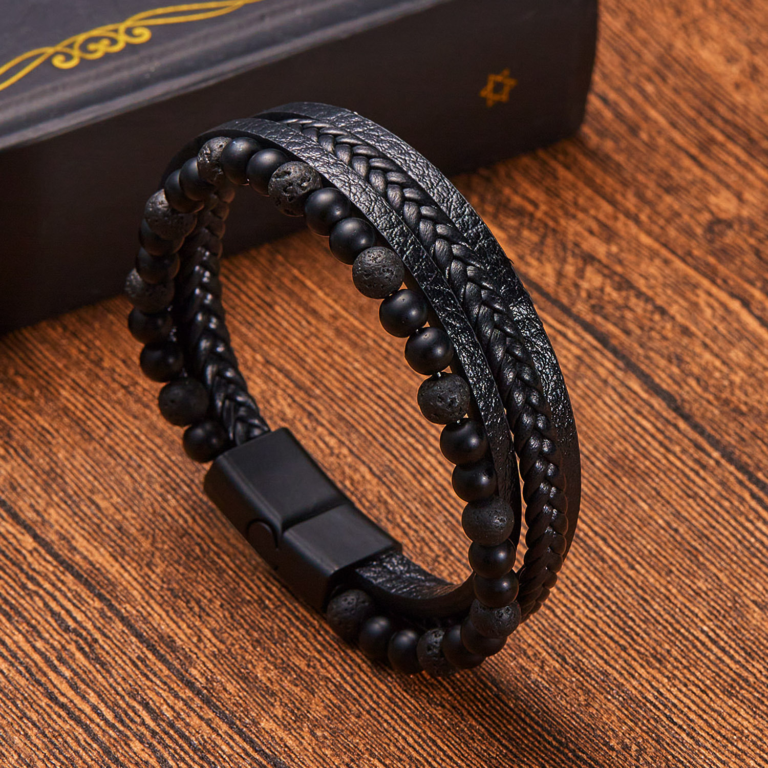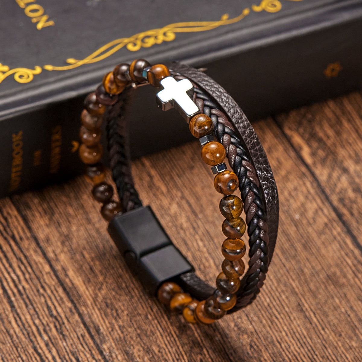 Discover the rugged charm of the Vintage Men's Multi-Layer Hand-Woven Bracelet. This handmade bracelet blends the earthy textures of natural stone beads and genuine leather for a look that speaks to your adventurous side. With its multi-layered design, it’s perfect for layering or standing out on its own.