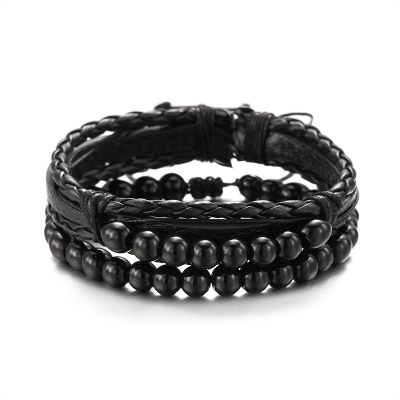 Vintage Men's Multi-Layer Hand-Woven Leather & Beaded Bracelet