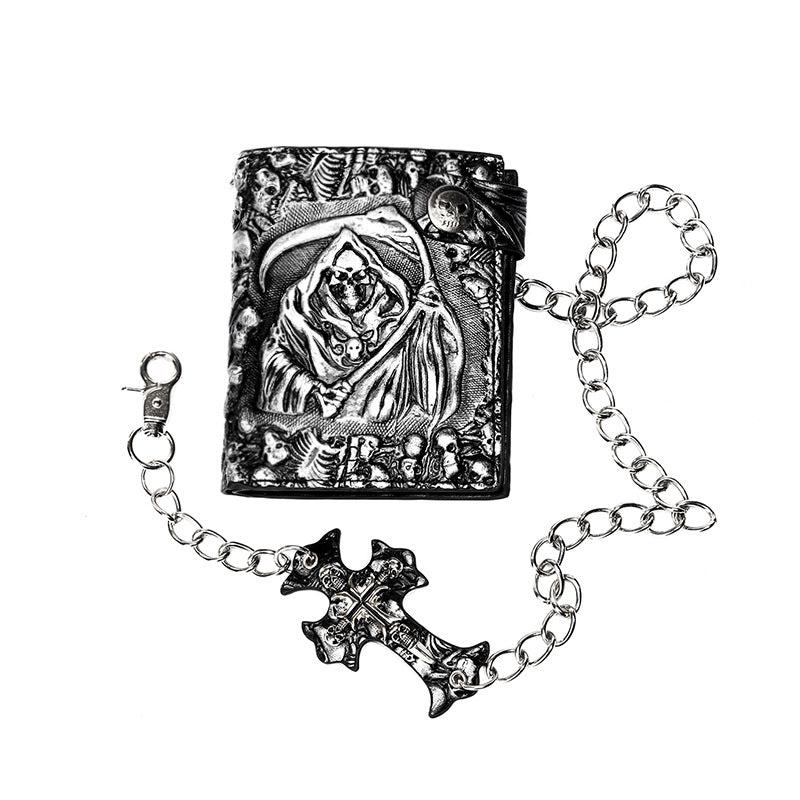 Punk Skull Wallet with Chain & Anti-Theft Design