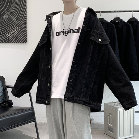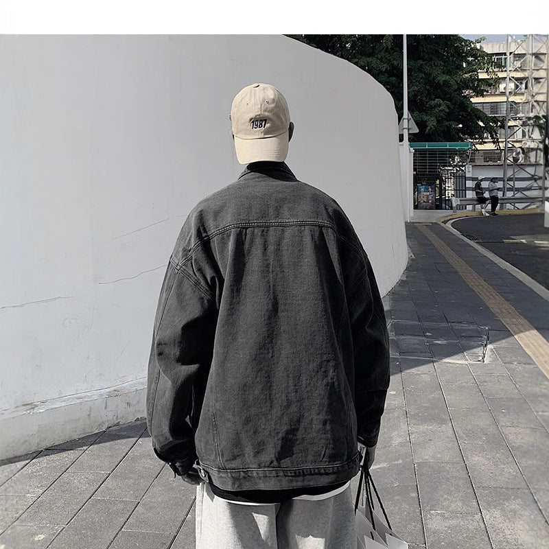 Korean Style Men’s Denim Jacket – Casual Lapel Cardigan