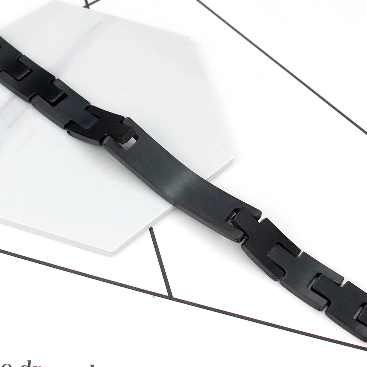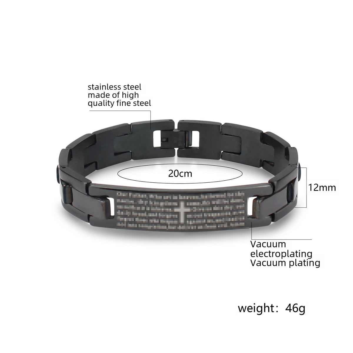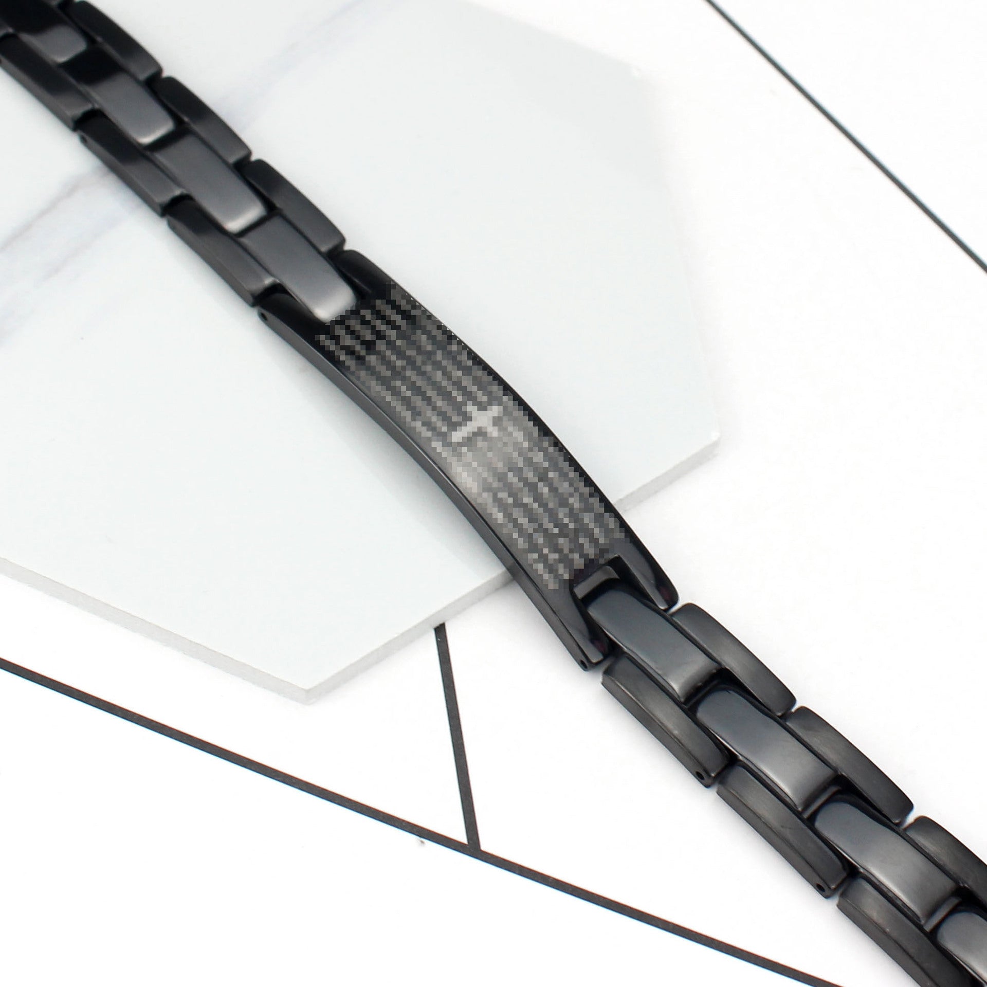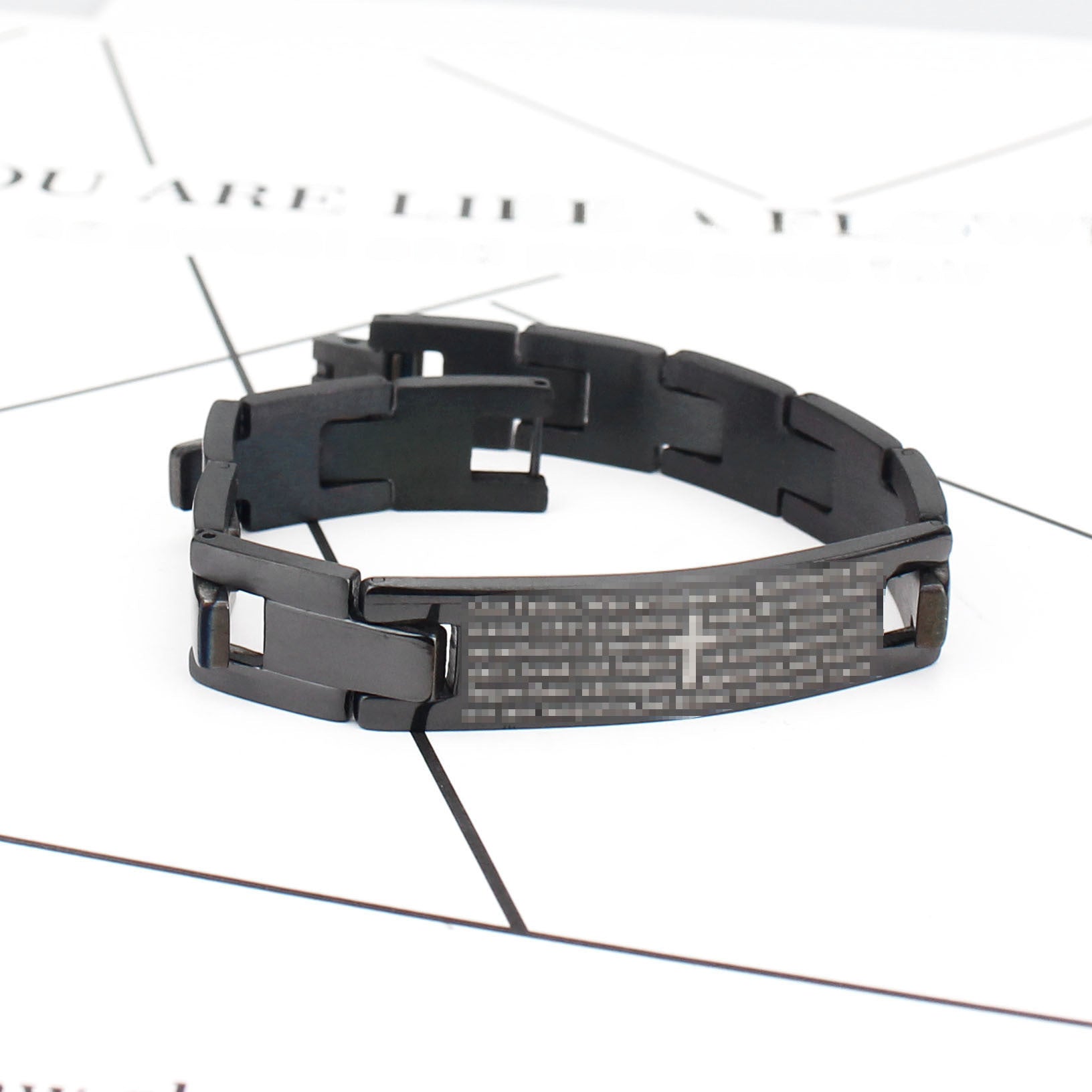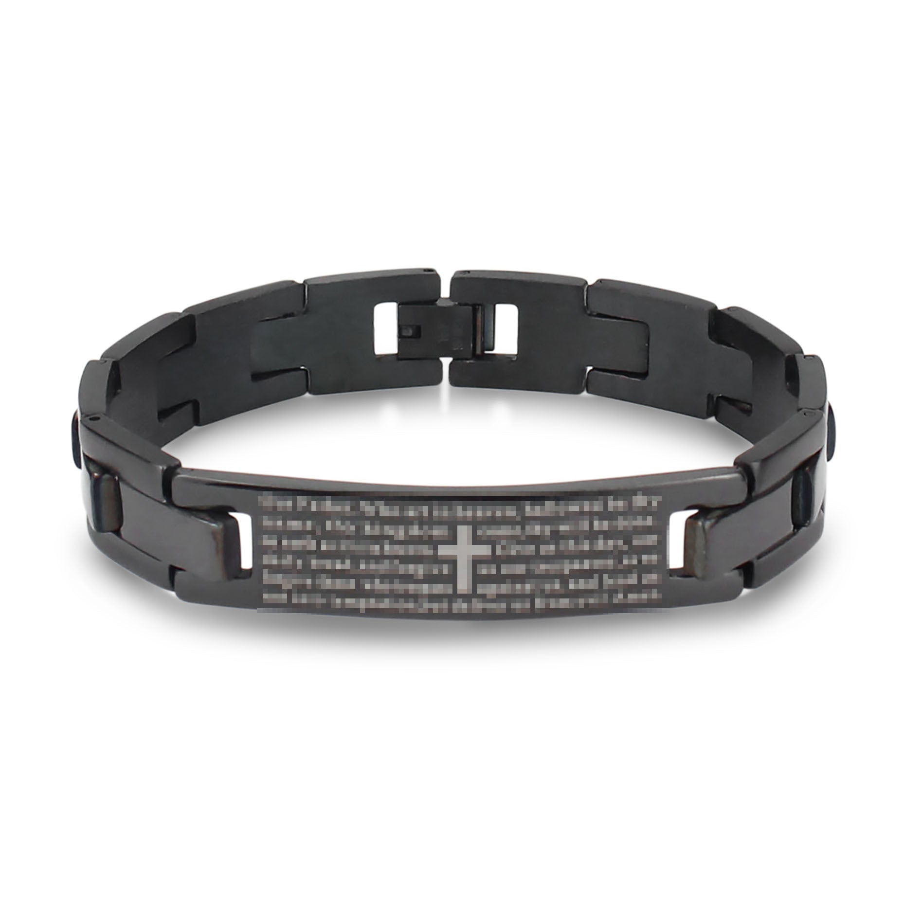 Stainless Steel Cross Bracelet – Black Curved Card Design