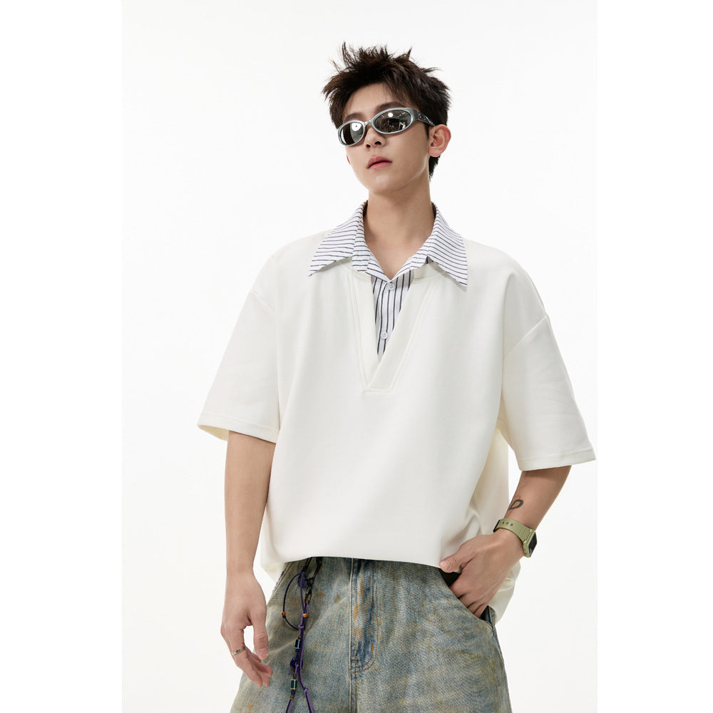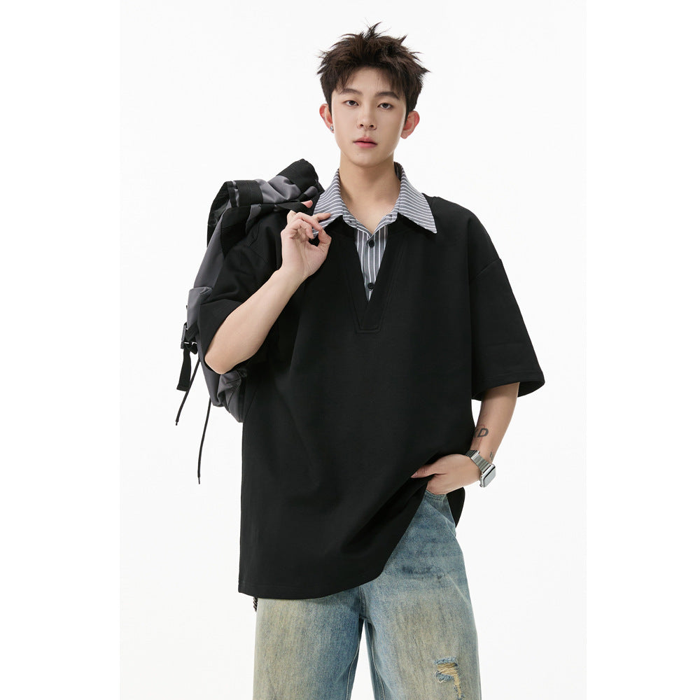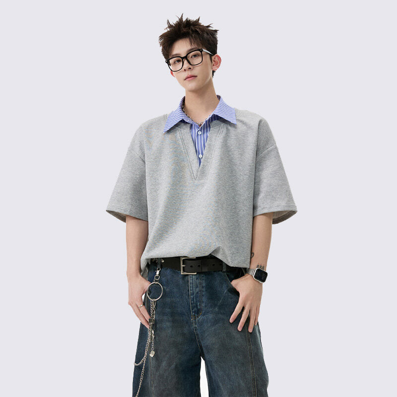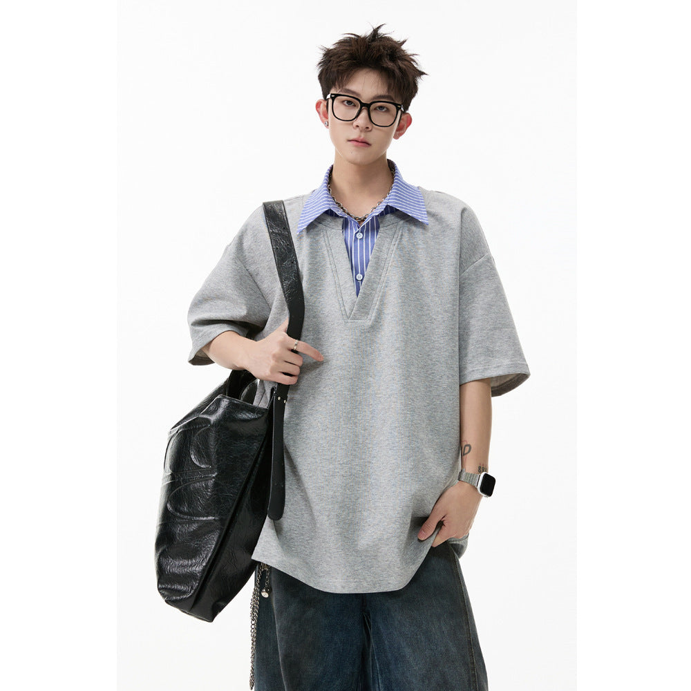 Men’s Fake Two-Piece Collar T-Shirt – Trendy Loose Fit OOTD Style