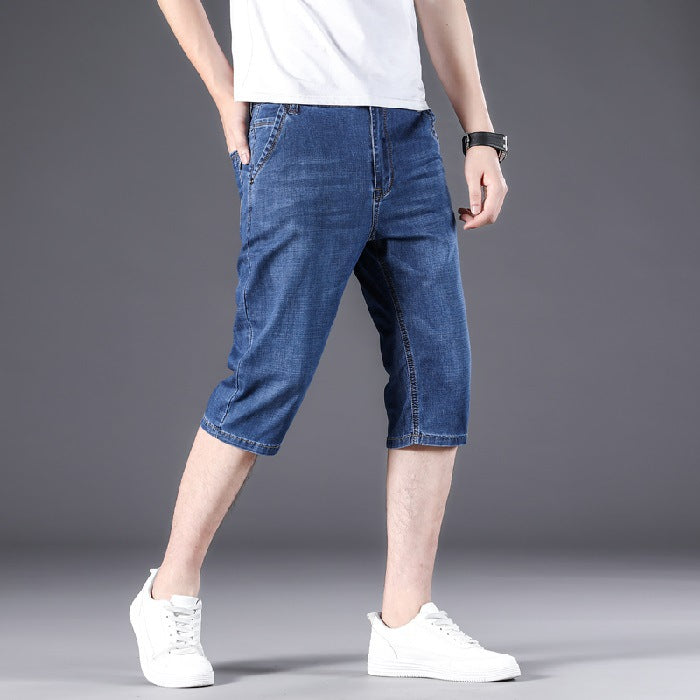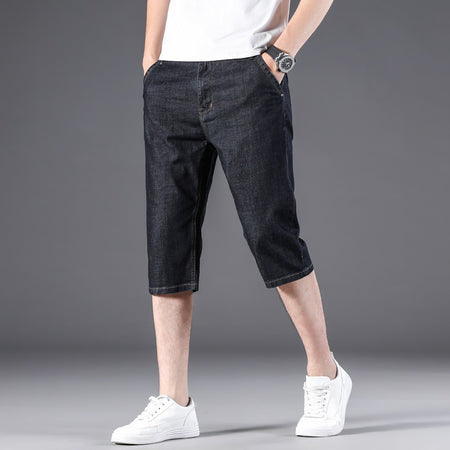 Men’s Stretch Denim Capri Shorts – Summer Loose Fit