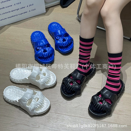 Crafted with high-quality, thick EVA soles, these slippers are ultra-soft, non-slip, and made for both comfort and fashion. The fun, edgy design brings a modern street-style vibe to your indoor routine. Whether it’s for lounging, quick errands, or bathroom use, these are your go-to summer slippers. 🌞🦶