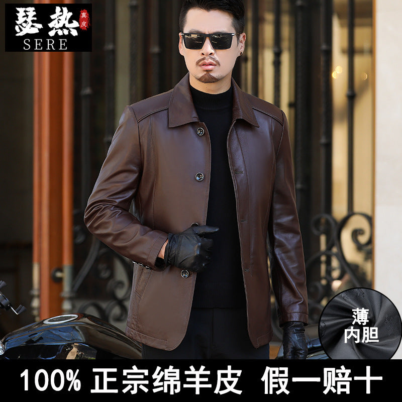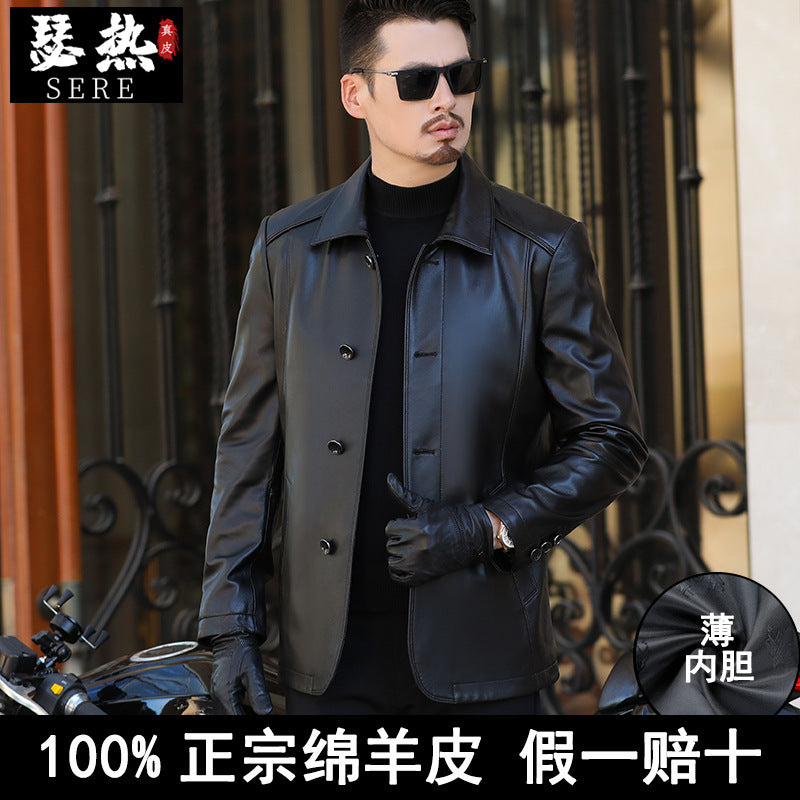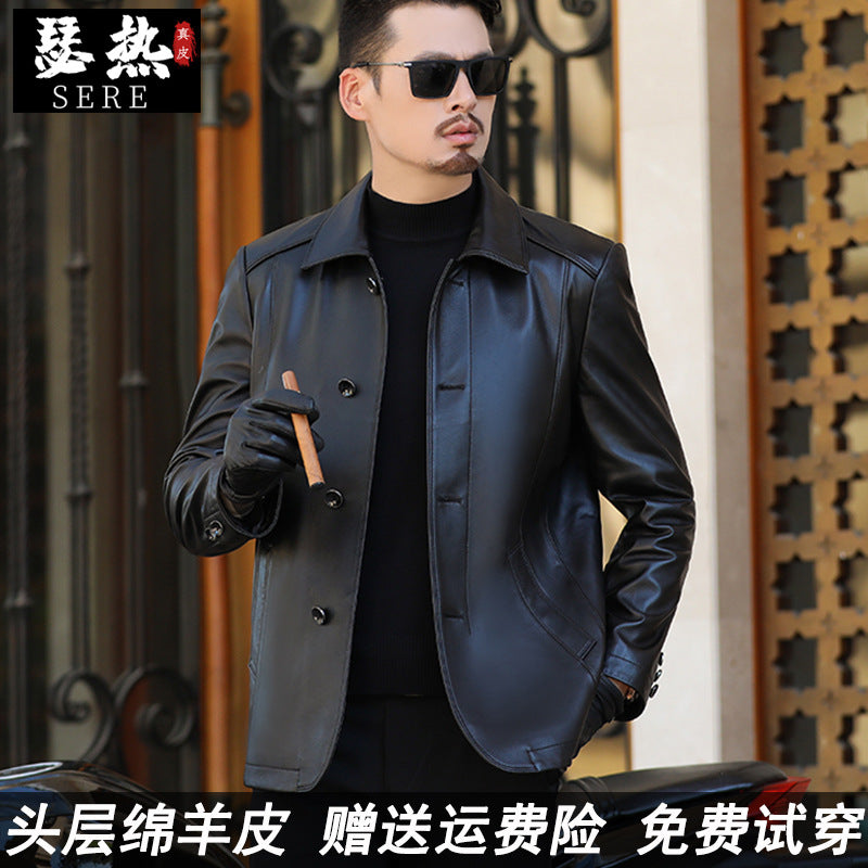 Haining Genuine Sheepskin Men's Leather Jacket | Autumn Winter Dad Style