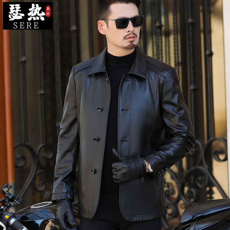 Stay stylish and warm with the Haining Genuine Sheepskin Men's Leather Jacket, crafted from first-layer premium leather for durability and a sophisticated look. Designed for middle-aged and elderly men, this jacket combines comfort, classic style, and practicality, making it the perfect dad-friendly autumn and winter outerwear.