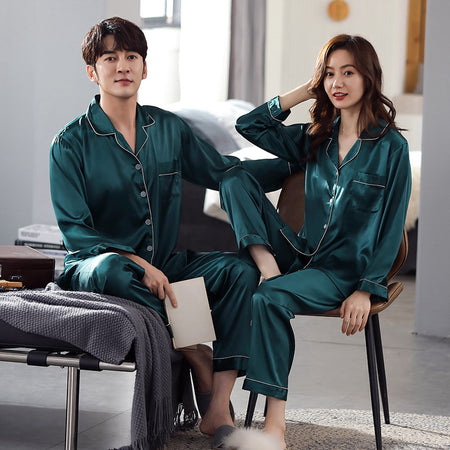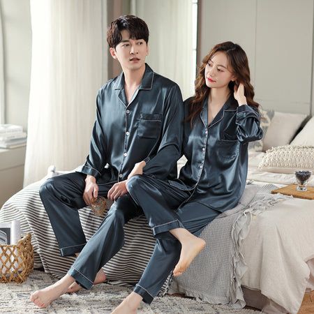 Han Yatong Silk Couple Pajamas β Soft Long Sleeve Cardigan Set