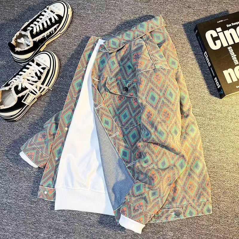 Men's Rhombic Denim Jacket | Stylish Spring & Autumn