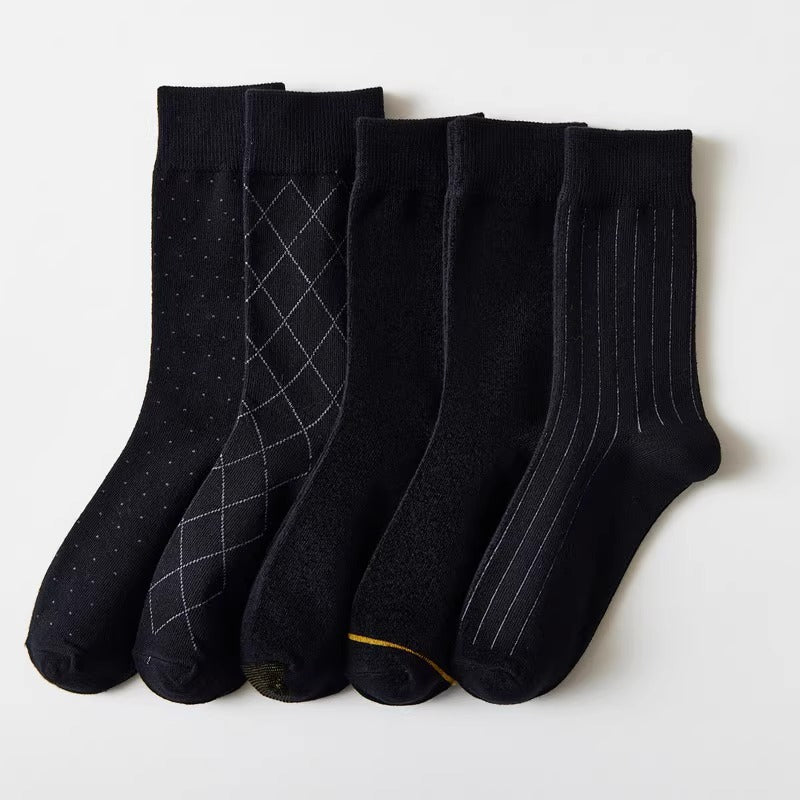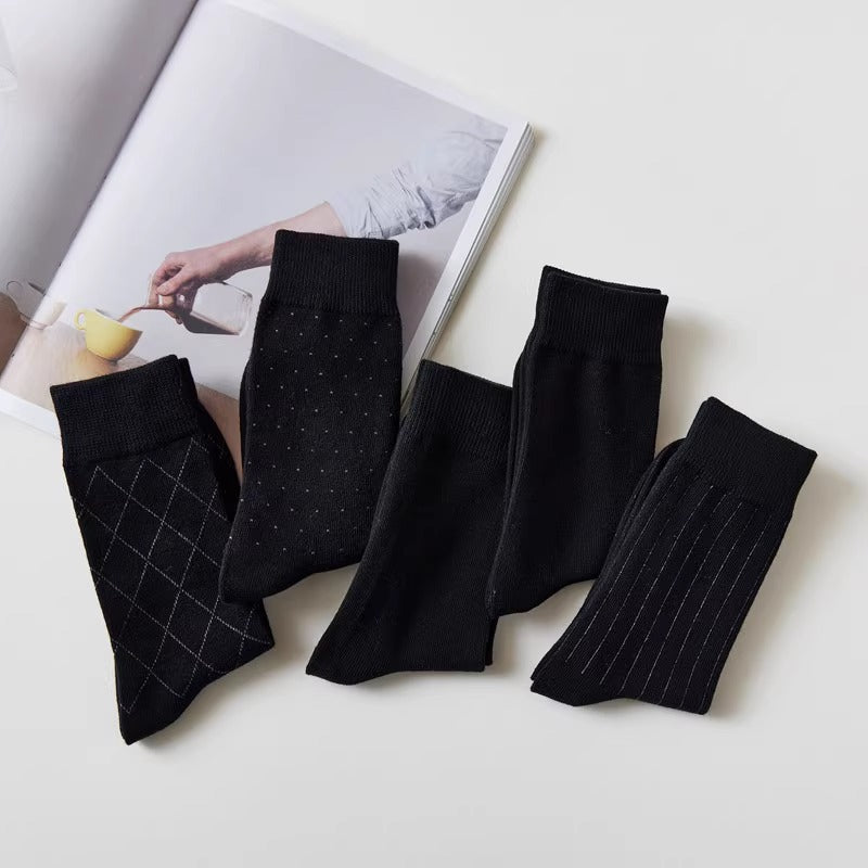 Stay sharp from head to toe with this pack of 5 men’s long black suit socks — the perfect finishing touch for formalwear, office looks, and classy events. 👞🧦 Made to pair effortlessly with leather shoes and business pants, these mid-calf thin socks deliver all-day comfort and breathable style.