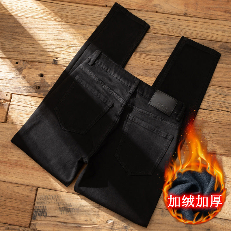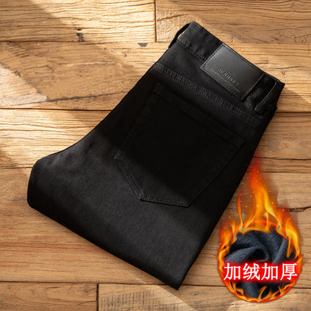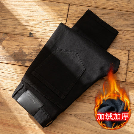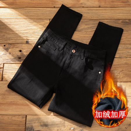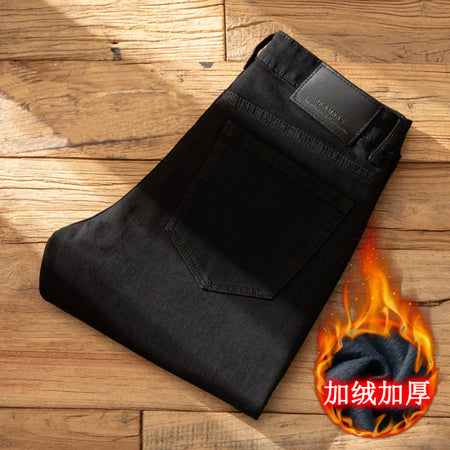 Men’s Black Fleece-Lined Slim-Fit Winter Jeans