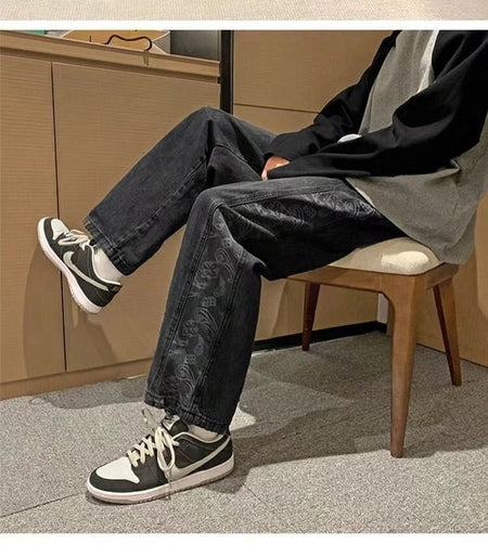 Men’s Korean Style Wide-Leg Jeans | Vintage Loose Fit